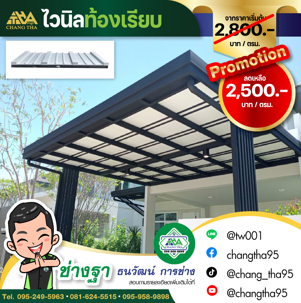บริการติดตั้งหลังคาไวนิล หลังคาเมทัลชีท หลังคาชินโคไลท์ หลังคาตีฝ้าระแนง หลังคาโปร่งแสง ติดตั้งฝ้าระแนง WPC ฝ้าอลูมิเนียม ไฟริบบิ้น LED ด้วยวัสดุคุณภาพ มีทีมแอดมินที่คอยบริการให้คำปรึกษา วัดหน้างาน ออกแบบโครงสร้าง 3มิติ ก่อนติดตั้งจริง พร้อมทีมช่างติดตั้งหลังคาที่ชำนาญงาน ประสบการณ์มากกว่า 20 ปี และยังมีรับประกันงานติดตั้งหลังคา 10 ปี